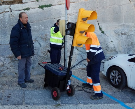 La Policía Local de Peñíscola regulará, a partir del próximo lunes día 15 de enero, de forma provisional y con semáforos móviles el acceso al Caso Antiguo a consecuencia de las obras de rehabilitación del pavimento empedrado en el entorno del Bufador. Coincidiendo la zona en obras con el acceso habitual a la ciudadela, por el Portal de Sant Pere; la Policía Local habilita acceso y salida por el Portal Fosch. Las obras se extenderán a lo largo de tres semanas a partir del próximo lunes, quedando abierto al paso el acceso habitual los días de la celebración de San Antonio Abad, fechas en las que las caballerías suben a la bendición de animales en la parroquia. "Hemos hecho coincidir la finalización de los trabajos del alzado del actual pavimento con estas fechas, para garantizar que se pueda desarrollar con normalidad la bendición de animales, tras el fin de semana, se llevarán a cabo los trabajos de reposición del pavimento" ha explicado el edil de Urbanismo, Romualdo Forner. Los semáforos provisionales ya pueden verse en la zona del Portal Fosch, ya que la Brigada Municipal, así como la Policía Local han programado su instalación a lo largo del día de hoy; comenzarán a funcionar el próximo lunes, simultáneamente al corte del vial de acceso por el Portal de Sant Pere.
