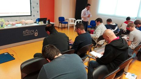 La concejalía de Deportes ha organizado una jornada de Formación para la acreditación en soporte vital básico y uso de desfibriladores externos semiautomáticos, titulación homologada de la Escuela Valenciana de Estudios para la Salud. Al curso han asistido entrenadores y directivos de los clubes locales, así como los conserges del pabellón polideportivo y el técnico municipal del área. Esta instalación deportiva cuenta con un desfibrilador semiautomático, que junto a los 8 desfibriladores con los que cuenta la localidad en otros edificios municipales y Policía Local suman un total de 9 dispositivos "que hacen de Peñíscola un municipio cada més más y mejor cardioprotegido" ha explicado la concejala del área, Raquel París, que ha agradecido la implicación del personal asistente a la jornada estos días, en la que durante un total de cuatro horas han contado con las instrucciones necesarias para emplear el desfibrilador en caso de necesidad, antes de la llegada de los equipos sanitarios al complejo polideportivo de la localidad.