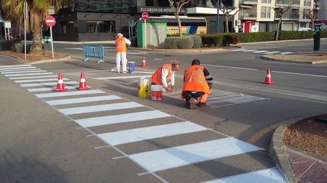 La Brigada Municipal de Obras y Servicios está ultimando estos días las tareas de pintura de viales y señalización horizontal en varias zonas del municipio. Los últimos días se ha llevado a cabo la pintura en calzada, pasos de peatones y nuevas plazas para discapacitados en las urbanizaciones Peñismar y Peñismar II, en estos momentos se están realizando las mismas tareas en la zona del Ullal, Avda Maestro Bayarri y la zona frente al Palacio de Congresos de la ciudad, para continuar en la Plaza Illueca. La semana próxima y hasta mediados del mes de mayo se efectuarán tareas similares por lo que respecta a la mejora de la pintura vial en la urbanización Llandells y la urbanización Fontnova. El equipo de pintura de la Brigada Municipal, cuenta con refuerzos gracias al plan de promoción del empleo financiado por el Fondo Social Europeo a través del Servef.
