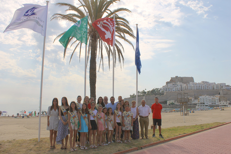 Esta mañana se ha celebrado en Peñíscola el acto de izada de las banderas que acreditan la gestión medioambiental y la calidad de su litoral, tanto en las dos playas urbanas, como en las 14 calas ubicadas en el Parque Natural.