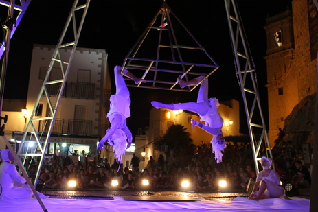 Anoche tuvo lugar en la Plaza de Armas del casco antiguo una de las citas más esperadas de este segundo fin de semana, el espectáculo de circo aéreo, Los misterios del Papa Luna, por la compañía Alas circo Teatro. Durante algo más de una hora los artistas realizaron acrobacias a la vez que se producía la narración histórica.
