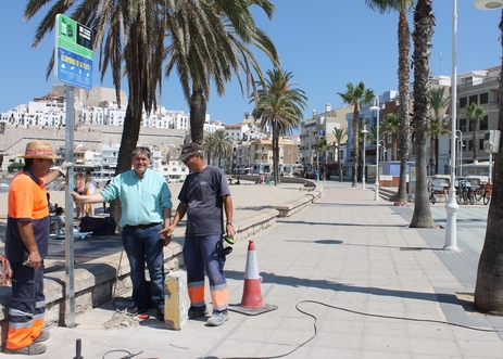 El edil de Comercio, Rafael Suescun, ha visitado hoy las obras de instalación de la señalética por parte de la Brigada Municipal de Obras y Servicios mediante las cuales se han dispuesto postes informativos en los que se informa de la prohibición de comprar y vender productos procedentes de la venta no sedentaria.