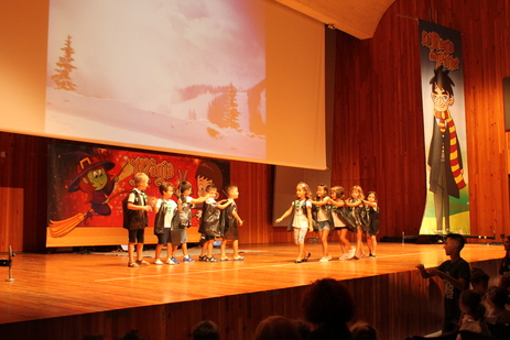 Caracterizados con disfraces hechos a mano como personajes de la saga cinematográfica de "Harry Potter", los niños y niñas que han participado este verano en l'Escola d'Estiu ofrecieron a todos los asistentes varias actuaciones musicales y de baile.
