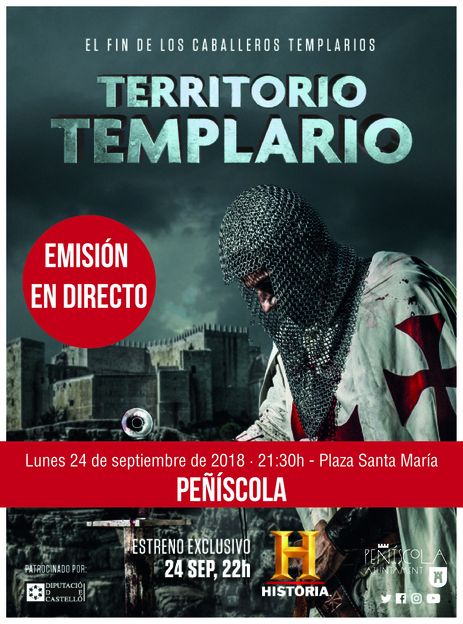 El lunes 24 de septiembre tendrá lugar en la Plaza Santa María de Peñíscola la emisión en directo del primer capítulo de la serie de Canal Historia “Territorio Templario”, patrocinada por la Diputación de Castellón.