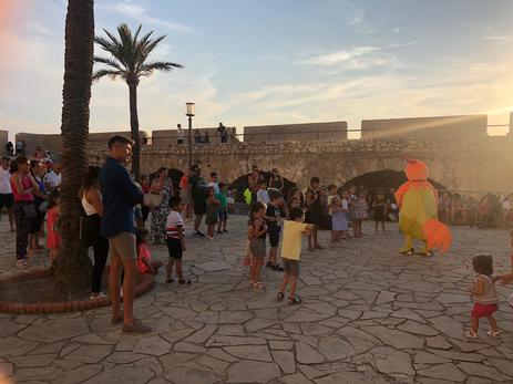 En la zona de acceso a los jardines del Castillo, en la Batería del Calvario, se llevan a cabo los seis espectáculos programados, que han comenzado este miércoles y que están orientados al público infantil.