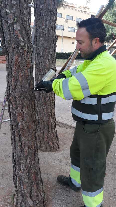 La Concejalía de Servicios ha comenzado hoy los tratamientos de prevención para el control de la plaga de la procesionaria en el municipio. A lo largo de toda la semana se realizarán tratamientos individualizados a un total de 25 árboles, los ejemplares de pino más sensibles y con más afluencia de esta oruga. Todos ellos se encuentran en suelo público y en núcleo urbano, los cuales van a ser tratados con endoterapia y con dos trampas masivas.