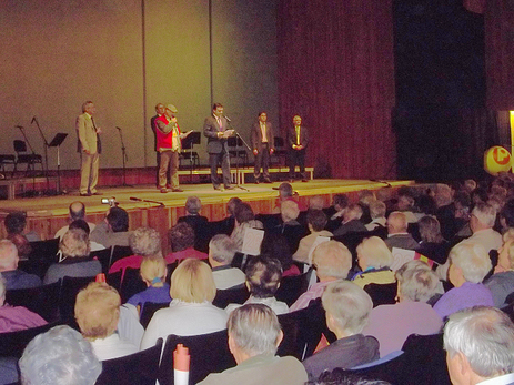 El diputado provincial de turismo, Andrés Martínez y alcalde de la ciudad de Peñíscola, ha ejercido de anfitrioón junto al Presidente del Patronato Municipal de Turismo de la ciudad, en esta fiesta celebrada en el Palacio de Congresos, en la que han estado acompañados por un presidente regional de Pensionisten Verband que se ha desplazado hasta la ciudad para participar de esta bienvenida.