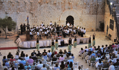 concierto de marchas Moras y Cristianas en el Patio de armas del castillo de la ciudad.
