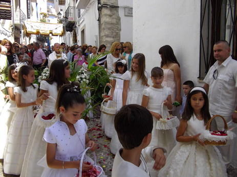 Peñíscola ha celebrado hoy la festividad de Corpus Christi con la eucaristia y la tradicional procesión por las calles del casco antiguo, progragonizada por la Custodia bajo Palio y los niños y niñas que han tomado este año su Primera Comunión.