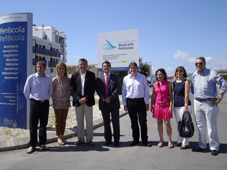Los alcaldes de Benicarló, Marcelino Domingo, y Peñíscola, Andrés Martínez, acompañados de los concejales de Turismo de las dos ciudades, María Ortiz y Rafael Suescun, han presentado los carteles que anuncian el Plan de Competitividad Turística Benicarló-Peñíscola: producto náutico. Se han instalado cuatro carteles en puntos estratégicos de las dos ciudades que reproducen la imagen de marca que se presentó hace unos meses. Por un lado, se han instalado dos carteles en el entrada norte y a la avenida de las Cortes Valencianas de Benicarló, y en Peñíscola se han instalado en la carretera Benicarló-Peñíscola y en la avenida de la Estación.