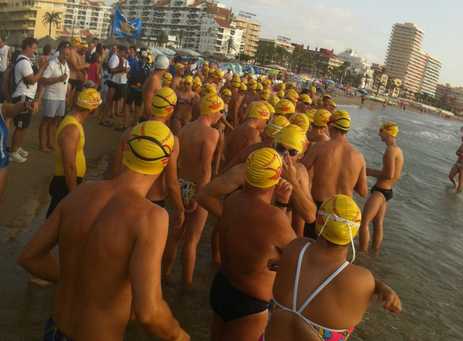 Peñíscola acogía el domingo la salida de la vigésima travesía entre la Playa Norte de la ciudad y la Playa del Morrongo en Benicarló, una clásica de siete kilómetros y medio que comenzaba a las nueve de la mañana.