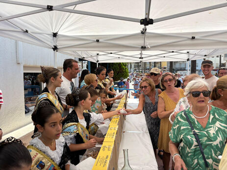 La Reina de las Fiestas, Blanca Rovira, y su Corte de Honor, han repartido los típicos pastissets (más de 2.000) y moscatel (15 litros), para agasajar a los turistas, dentro de la programación de las Fiestas Patronales en honor a la Virgen de Ermitana. En el reparto han participado también los componentes de la Comisión de las Fiestas.