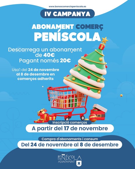 El Ayuntamiento de Peñíscola ha puesto hoy en marcha la iniciativa del Bono Comercio, para dinamizar el sector durante las compras pre navideñas, tal y como ha explicado la concejala del área de Comercio, Lidia Herrero: "esta es la cuarta campaña que llevamos a cabo, la segunda de este año; la primera que llevamos a cabo cercana a las fiestas de Navidad, una época en la que queremos dinamizar también las compras en nuestro propio pueblo".