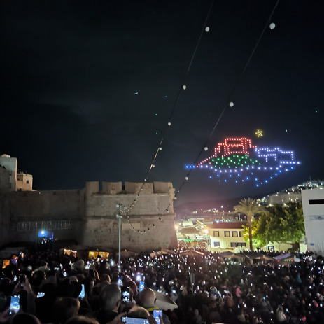 Los drones hicieron posible la común cuenta atrás para el encendido de las luces que recorren la mayor parte de la ciudad antigua.