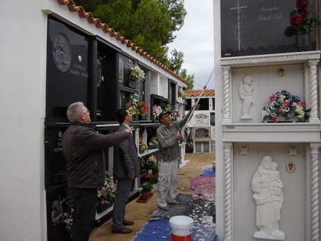 La Brigada Municipal de Obras y Servicios ultima las actuaciones de mejora del entorno del cementerio, con motivo de la legada del primero de noviembre, fecha de la celebración del día de Todos los Santos en la que se espera gran concurrencia de visitantes al camposanto.