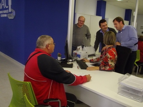 El alcalde, Andrés Martínez, ha querido acompañar al concejal en su visita a las dependencias del SAC y ha manifestado su agradecimiento al equipo del departamento de modernización y a los funcionarios que se encargan de dicho servicio ya que “era una apuesta nueva, que requería de su formación e implicación ya que todos los funcionarios que están atendiendo en los distintos mostradores, deben poder solucionar al ciudadano trámites de todo tipo, desde los de registro, padrón, catastro o rentas, pasando por los trámites administrativos del departamento de urbanismo”.