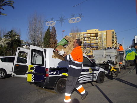 La Policía Local traslada a la planta de residuos los artículos del top manta