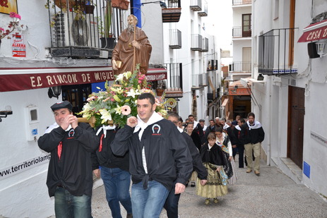 Peñíscola ha celebrado la festividad de San Antonio Abad con una procesión por las calles del casco antiguo de la ciudad y una misa en honor del santo en el ermitorio de su Patrona, la Virgen de Ermitana. Durante la celebración eucarística se ha efectuado la tradicional ofrenda de productos de la tierra a cargo de los mayorales de San Antonio y se ha entregado al mayoral del año la blusa y el tradicional pañuelo. José Juan Serrat, el Mayoral 2013, ha agradecido a la agrupación la distinción y ha deseado unas buenas fiestas a todos.