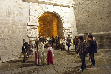 La procesión de Jueves Santo en Peñíscola estrenaba ayer nuevo itinerario, un recorrido más amplio que el habitual que trasladó los pasos de los procesionarios de la calle Fulladosa a la Bajada del Portal Fosc, recorriendo las murallas renacentistas de uno de los exponentes más importantes y mejor conservados de arquitectura militar de ese periodo en nuestro país.