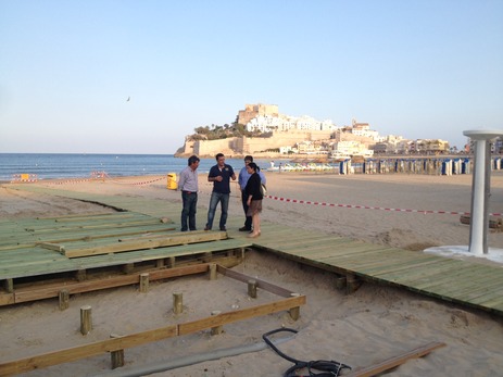La concejalía de Playas del Ayuntamiento de Peñíscola, lleva a cabo una de las últimas acciones de puesta a punto de las playas en el municipio, tras varios meses de tareas intensivas de preparación del mobiliario, limpieza exhaustiva y puesta en marcha de los distintos servicios, esta semana finalizarán las obras de renovación del Punto Accesible de la Playa Norte.