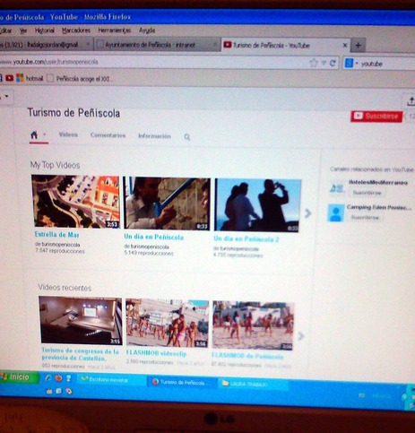 Peñíscola creó su propio canal en Youtube hace dos años y a lo largo de este tiempo ha registrado 201.311 reproducciones de los vídeos en oferta, prácticamente el doble del destino que le sigue a la zaga, Benidorm, con 128.175 reproducciones en su canal institucional, según el Primer Barómetro de Redes Sociales de la Comunitat Valenciana, correspondiente a 2013, publicado por el Invat.tur.