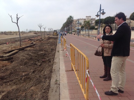 La concejalía de Servicios del Ayuntamiento de Peñíscola está sustituyendo las antiguas traviesas de tren contiguas el último tramo de Paseo Marítimo a causa de su deterioro, “concretamente 300 metros frente al Hotel Peñíscola Plaza Suites” ha detallado la concejala del área, Lupe Roig, que ha supervisado el inicio de los trabajos junto al alcalde, Andrés Martínez. Se trata de la eliminación de las traviesas de madera y la mejora de este tramo contiguo al paseo con hormigón impreso y once alcorques para los once ejemplares de tamarindo que hay en ese espacio. La concejala ha detallado que el consistorio invierte en esta actuación 12.000€ y ha confirmado con la empresa la previsión para su finalización para la próximas semana.