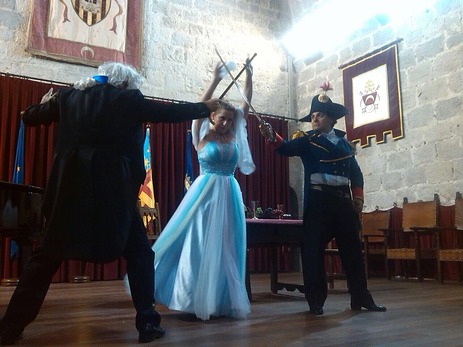 Mikhail Studyonov, piano, Rodolfo Albero, voz tenor, Helena Gallardo, voz soprano, y Jesús Lumbreras, voz barítono, dieron al ciclo de música clásica un giro en clave teatral el jueves 18. El grupo de 4 músicos interpretaron diferentes piezas donde los brindis con copas en la ópera y la zarzuela fueron los protagonistas. Así, obras como “Oh, licor que das la vida”, fragmento de “La leyenda del beso” del maestro Reveriano Soutullo con la colaboración de Joan Vert, o “Libiamo, brindis”, parte de la conocida obra de G.Verdi “La traviata”, pusieron al público de pie repetidamente durante la velada musical. La música junto a la interpretación de los músicos dejó a casi un centenar de personas sin butacas para escuchar el recital en el Salón Gótico del castillo.