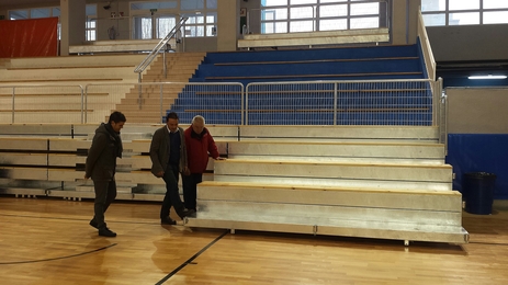 El alcalde, Andrés Martínez, ha querido comprobar el estado de la instalación horas antes de su puesta de largo tras las obras, junto a los ediles de Deportes y Urbanismo, Dani Biosca y Romualdo Forner, respectivamente con quienes ha podido comprobar los últimos preparativos que se están llevando a cabo para que este fin de semana el pabellón acoja las competiciones oficiales.
