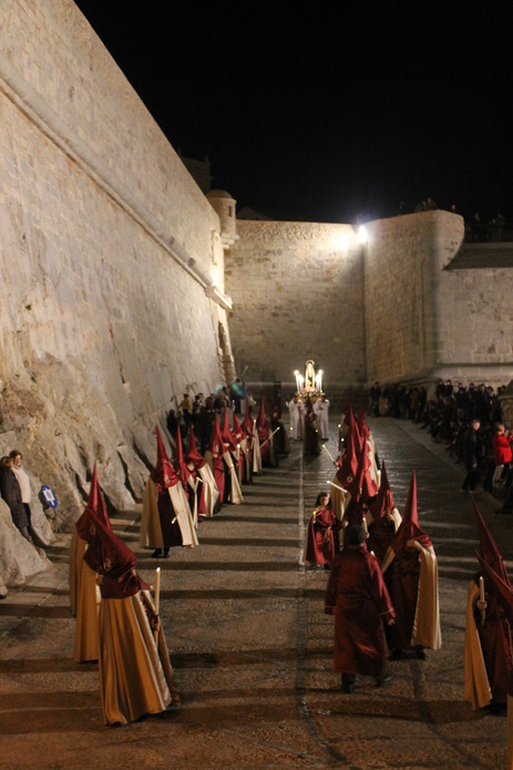 Peñíscola retoma las celebraciones litúrgicas tras la celebración del Domingo de Ramos con la Procesión de Jueves Santo que recorrió durante la noche de ayer las empedradas calles del casco antiguo. A la procesión acudió el alcalde de la ciudad, Andrés Martínez, y los miembros de la Corporación Municipal.