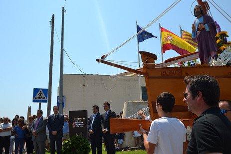 A la llegada de la peana de San Pedro al monolito en honor a las víctimas, el alcalde de la ciudad, Andrés Martínez, junto a las autoridades asistentes y el Patrón Mayor de la Cofradía de Pescadores, Miguel Castell, han depositado una corona en su recuerdo junto a la Reina de las Fiestas y su Corte de Honor.