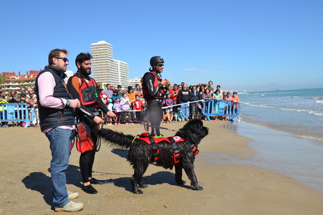 Durante la mañana de hoy, la Playa Norte de Peñíscola ha acogido varios ejercicios de formación y adiestramiento de la unidad voluntaria canina de rescate que colabora con el equipo de salvamento en playas, con motivo de la oficialización de la nueva sede de la unidad de rescate Mare Nostrum en la localidad. En total han participado en el ejercicio siete unidades de otros puntos del país.