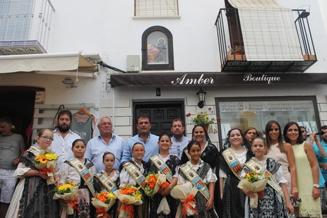 A la llegada de la comitiva en procesión, formada por la Corporación Municipal y la Corte de Honor de las Fiestas de 2015, la Regina de los festejos, Carme Castell, ha protagonizado la ofrenda de flores a Sant Roc, como es tradicional.