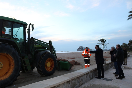 Martínez ha comprobado junto a los ediles de Urbanismo y Servicios las tareas de limpieza intensivas en paseo marítimo y playas, que han arrancado ya hace un par de días y se prolongarán, "con toda probabilidad a lo largo de toda una semana".