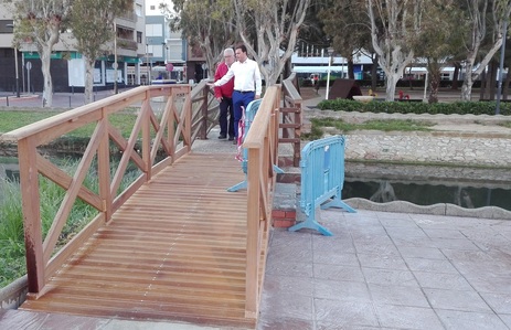 El alcalde, Andrés Martínez, ha conocido las mejoras en la estructura junto al edil del área de Urbanismo, Romualdo Forner, en una visita en la que han podido comprobar el resultado de los primeros trabajos. Tras la mejora y rehabilitación de uno de los puentes a través del Plan de Accesibilidad del Plan de Competitividad del destino turístico, "procedemos a acometer una nueva mejora en este entorno; necesaria y muy requerida por la multitud de usuarios que emplean este puente como paso de un lado al otro del Ullal" , ha explicado. Los trabajos finalizarán antes del miércoles, según ha informado la concejalía.