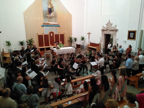 En este concierto, han participado 25 voces de la Coral Polifónica de Peñíscola y la Orquesta de Cámara Santa María, por su parte, con una plantilla de 8 cuerdas y 6 vientos, todos ellos dirigidos por Salvador García Sorlí.